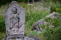 My wife made breakfast for us. And she also made three lunch boxes, one for her son and two for our lunch. My son went to work as usual. Today, my wife and I went to Jizo Pass, and I parked my FJ in the shade of trees at there (1,732m above sea level) and left my cat inside the car. Then, we climbed Mt. Yunomaru (2,101m above sea level). It was a nearly straight climb, with very little shade, and the weather was good and the sun was strong, so we sweated quite a bit. This mountain has two peaks (South Peak 2,101m, North Peak 2,099m), about 200m apart. We climbed both, but there was no suitable shade there, so we had lunch in a shady spot a little further down. We went down the mountain around 3 o'clock. However, it was so hot in Ueda that we stayed at the pass until sunset. My wife was reading a book with the cat in the car. I took a few photos of the Kannon statue at number 65 at the pass. Next, I parked in a large parking space at the close to the 22nd Kannon stone statueand started taking photos from number 22. As I was going down the mountain pass road, I also took photos of the Kannon statues at numbers 21, 20, and 19. Before I knew it, the sun had gone down. I called my wife and asked her to drive the FJ to the statue at number 19. We arrived in Ueda at 6pm. My wife cooked our dinner. |