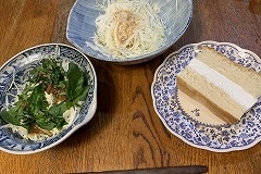 My wife cooked our breakfast, and I made coffee. My wife baked a chiffon cake to entertain guests during the spring equinox, which was served with whipped cream and candied apples. We had three sets of guests. My younger brother, my brother-in-law, and my wife's aunt. They were all relatives. We chatted with each of them for a while. |