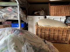 I made Oshiruko (Mochi and Anko), granola yogurt for my breakfast. I also had some piar and cafe au lait. Next month, on Saturday, October 4th and Sunday, October 5th, the Western Prefectural Lifelong Learning Festival will be held. The Photo Kano Club will be holding a photo exhibition there. I have framed my eight photos for the exhibit. I had a toasted bread with two kinds of cheese for my lunch. I checked my home spending history, which had been accumulated for over three months. I have six account categories, cash, three credit cards, and two various electronic code payments. My wife also has the six. So my desk was full of receipts. Cats love to get into boxes. The cardboard box where I store slips was empty, so she went in. I made stewed lotus root, aburaage, and carrots, and a tofu with vinegared wakame seaweed and cucumber for my evening meal. I also had apple and Shine Muscat. |