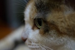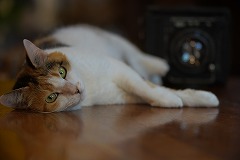 I had a hot sandwich, fried egg, grilled eggplant, grilled peppers, shredded cabbage and sesame salad, and cafe au lait for my breakfast. I put my Konica C-35 flashmatic without a lens up for sale on Yahoo! Auctions. I don't think anyone will buy it, but just in case. I also put up other lenses I don't need. Around 4pm, I felt like the temperature had really risen, so I retreated to an air-conditioned room with my cat.I |