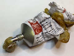 I woke up before dawn. I took a walk around the Ueda castle park before my breakfast. I took some photos under Ninomaru Bridge and a few other places. I bought two Gyunyuu-pan (milk bread) at the bakery Kokorade. It's bread sliced in two and stuffed with plenty of buttercream. It's the soul food of Nagano residents. I wanted to buy three, but there was a limit of two per person. Then I parked in the parking lot of Tsuruya and bought some Misuzu-ame and a snack called "Kurumi Soba". I also bought Fuji Ice's "JimanYaki". I had made a reservation for Fuji Ice by phone for 12:10. However, it seemed that they had received a large order before that time, so I had to wait about 20 minutes. I bought two packs of 5 Jiman-yaki. I returned to Iwai around 6pm. I had a salad with canned saury, shredded cabbage, and basil, gyuunyuu-pan for my evening meal. |