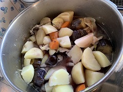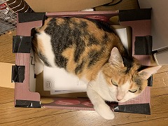 I made a Patata Tortilla and it was a little, no, quite overcooked. I had it, granola yogurt, apple, and cafe au lait for my breakfast. Every year, I undergo an MRI scan for the cerebral aneurysm at the Tsukuba Neurosurgery and Headache Clinic. This year, I made a appointment by phone in advance. So, the wait time was short, and everything was done in about 90 minutes. After looking at the images, my doctor said there was no change from last year, and he said you will schedul for a follow-up appointment one year later. I bought a lot of vegetables at Torisen. I made sauce yakisoba with lots of vegetables. It was 2servings. I had one serving for my lunch. I left serving in my rifge. I also made a large amount of curry with pork and lots of vegetables. Made at least 8 servings. I made 2 packs of 3 servings each and froze them. I left 2 servings in the pot. Cats love to get into boxes. I have a wooden box on the table where I keep all the little things that get scattered around. When I took my camera out from it, my cat immediately swapped place. I had curry rice and seaweed and cucumber vinegar dish for my evening meal. |