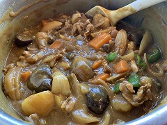 Today was cloudy with some rain in the afternoon. The temperature wasn't too high, so there was no need to move FJ to the shade. My wife and I took a walk around Ueda City. We ate soba noodles at our favorite soba restaurant Katanaya. We did some shopping at Aion. I bought kidney care food and cat shampoo for our cat. When my wife bought a running cap, so I took a side view photo and showed it to her to see which one looks better on her. My wife made pork and eggplant curry for our evening meal. |