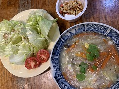 I parked my car in the parking lot at Bando Masakado no Sato and took photos of Mount Tsukuba from the Shimousa Tone Bridge. I went to take photos twice, from 7am to 9am and then around 11am. Bando Masakado no Sato has a farm produce shop selling local specialties, a tourist information booth, a bicycle station, and more. I bought and ate some anpan from the Setagaya Bakery brand. 「坂東将門の里」https://bando-masakadonosato.com/ I made two servings of sauce yakisoba noodles with lots of vegetables, one for my evening meal and the other for later. I also made hakusai hotate salad. |