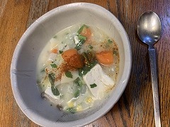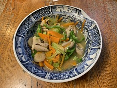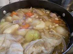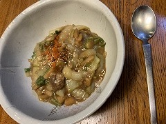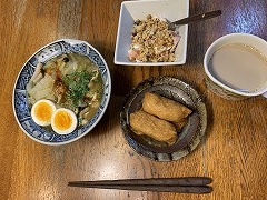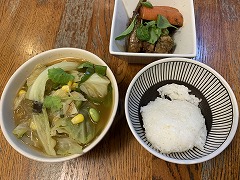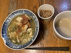 ![]() I added boiled eggs and rice cakes to Chinese cabbage soup for my breakfast.I also had 2 inarizushi, granola yogurt, and cafe au lait. I made a soup with tofu, hakusai, carrots, pieman, and shimeji mushrooms for my evening meal. The quickest way to make it is to just put everything together and make a soup. I |