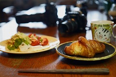 ![]() I had vegetable soup with sliced fresh cherry tomatoes, grilled atsuage, granola yogurt, and cafe au lait for my breakfast. Today was a nice, warm day with no wind. I opened the windows wide and cleaned all the rooms. However, the table remains overflowing with photography equipment. I should. Let's finish by the evening. I had vegetable curry soup, braised pork ribs, and rice for my lunch. I chose the lense from spread out on my table, I would use today. I would use today. In the end, I decided on the Nikon EL-NIKKOR 50mm 1:2.8 No. 2037188, for which I recently made my own mount adapter. EL stands for enlarger lens. It's a lens used for enlarging, but I modify it and use it for taking photos with my digital camera. I bought croissants at "momofuQ," which I had heard about during my last Saturday English class. The exterior of the store looks like a renovated warehouse or garage. It's near Nagaya Temple. I was surprised to find a croissant specialty store so close to me. Then I went to the Nagaya temple and took some photos with EL-NIKKOR lens. This lens created images that are even more captivating than I expected. I think this will come in handy a lot. For my evening meal, I had braised vegetable and pork innards, and anko croissant bought at momofuQ. |