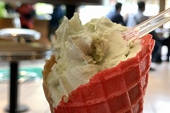 Today, my wife and I went to the summit of Mt. Nagamine. Mt. Nagamine is on the edge of Azumino, which is the northern part of the Matsumoto Basin. To get from the Ueda Basin to the Matsumoto Basin, you have to cross two mountain passes. We enjoyed driving along the mountain pass road. We got a good view of the Japanese Alps from the summit. What's more, there was a plathome stand for hang gliders and paragliders at the top of the mountain. It seemed like there was some kind of competition going on today. More than 20 of them took off one after another. Unexpectedly, I was able to see them take off up close. We ate our lunch there. We then visited Daio Wasabi Farm in Azumino, which was recommended by an Ueda friend of my wife. Azumino is a collection of alluvial fans. As a result, there are many springs and the water is very clean. Wasabi cultivation is also popular, and there are many wasabi farms. Among them, Daio Wasabi Farm is famous for welcoming tourists and being transformed into a theme park. For me, it was big, however just a view of the wasabi fields, and it wasn't very photogenic or impressive. It might be better if we could get closer to wasabi. The only thing I took a picture of wasabi ice cream. Even this, I don't need wasabi in it. |