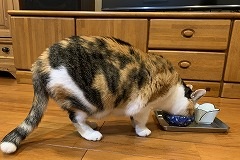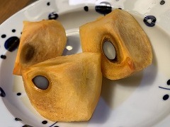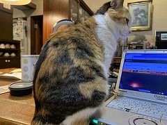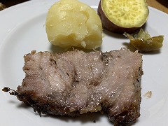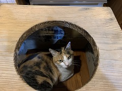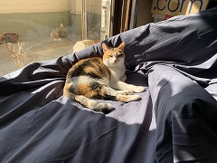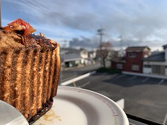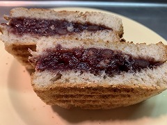 I baked potatoes and sweet potatoes in my Dutch oven in the morning. I also made tofu and vegetable soup. I added the potatoes in it for my breakfast. I had the sweet potatoes for my lunch. My favorite variety of sweet potato is Gorojima Kintoki. Whenever I see it, I buy it. And when I bake it in a Dutch oven, it makes the best Yakiimo. Miya-O is always in a warm place. I made an Anko butter sandwich. I put a generous amount of Anko between two slices of buttered bread and baked it in a hot sandwich maker. I had it for my evening meal. |