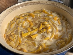 I made ika furai( fried squid) rice bow for my breakfastl. It's a fried squid version of katsudon. I replaced the pork cutlet with fried squid. I also had grilled atsuage, persimmon yogurt, and cafe au lait. Apparently, the Oniyanma model is effective in keeping bees away. I bought it on Amazon hoping it would also work on horseflies. 3 pieces for 894 yen. I have never been stung by a bee, but horseflies often bite my skin while taking photos. I got a lot of yuzu for free. I made yuzu jam. |