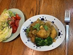 I had salad, curry potato, cafe au lait for my breakfast. Curry potato is a dish served with potatoes baked in a Dutch oven instead of rice. Today, I skipped my Saturday English Class and went to Iwai Driving School to take a senior driving course. The training course consisted of a dynamic visual acuity test and an instructor observing the driver as he drove around a course. I have to renew my driver's license in February of next year. When you turn 70 or older, you need a senior driving course completion certificate to renew it. That's why I took the course and got the certificate. One of my wall clocks broke. I replaced the battery, but it still doesn't work. I tried to replace it with a movement I had in stock. What I thought was in stock was actually a broken item that has been replaced last time. I ordered the movement from Amazon. I had vegetable and tofu soup, sweet potato, and persimmon yogurt for my evening meal. |