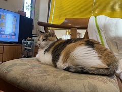 Starting today, I have to cook my own meals again. My younger brother brought some free radish, turnip, Hakusai, and lettuce. So, I made mix soup with radish, turnip, and Hakusai for my lunch. Miyao was sunbathing in her favorite spot for the first time in a while. My neighbor gave me some turnips and persimmons. Miya-O jumped onto the cupboard, but lost his footing and fell. She was disappointed. Perhaps it was because she hadn't exercised in the past few days, or perhaps it was because she was getting older. My son gave me a pair of kitchen scissors as a thank you for making a hometown tax donation. They're made by a manufacturer in Seki City, and my wife also uses the same ones.I |