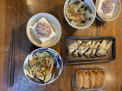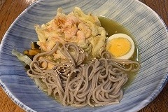 My wife made our breakfast. My wife and I went to Ami-machi to buy buckwheat flour from her friend. My wife and I had tenseiro at our favorite soba restaurant Kimura for our lunch. |