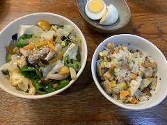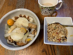 My wife and I went to the General Checkup Center at Tsukuba Medical Center Hospital at 7:30. Today was our annual health check-up day. I took a photo to commemorate the fact that I was able to come to this changing room without any illness or injury. I've been getting my annual checkups here for the past 20 years. It's great because they keep all the data from past checkups. They used to finish my chekup after 3:00 PM, but now they finish at 11:30 AM, so I can have lunch at 12:00 PM. After the checkup, we went to Cafe Posten. The aroma of coffee was soothing. My wife cooked a chicken dish for our dinner, along with lots of grilled vegetables. |