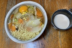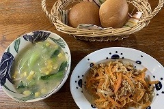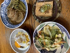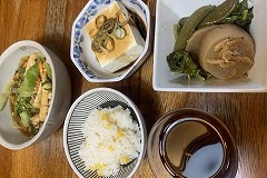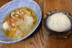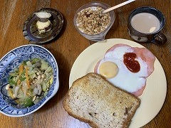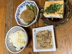 I made tofu and celery soup, and ham and eggs for my breakfast. I also had a homemade round bread and raw celery. There's a whole lot of celery. It was a sunny day, but the wind was blowing very strongly. I spent the whole day inputting accounting data, which included organizing receipts and gluing them onto receipt mounting sheets. This analog work creates a physical stimulus in my body. I've been doing this for 40 years, so I feel like this physical stimulus gives me a more accurate picture of the accounting situation than a list of digital data. I had a rice bowl of stewed pork spare ribs, celery tofu soup, and granola yogurt for my evening meal. |