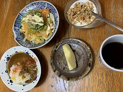 I had leftover sandwiches from last night, Nikuman, and cafe au lait for my breakfast. I had Ebideiko, toufu, nattou, and gohan for my evening meal. |