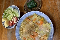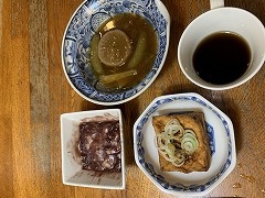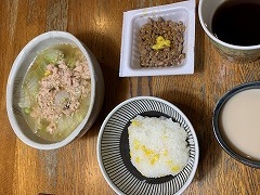 I made and had celery soup, grilled sweet potatoes, granola yogurt, ham and eggs, toast, and cafe au lait for my breakfast. I bought an A4 size photo frame at Joyful Honda Moriya store. I already have 4 wooden one, but it looks cheap and is less durable. I also already have 2 made of aluminum alloy that are beter. I bought two more of the same type made of aluminum alloy for 2,380 yen each. It's a great product for the money. I wanted to eat out for lunch, but everywhere was crowded, probably because of the holidays, so I went home. I had the same thing as this morning at home for my lunch. I also had plenty of celery. I received a Hakusi from my younger brother. So I made Hokusai and tuna soup for my evening meal. I also had Natto, gohan, cafe au lait. |
