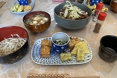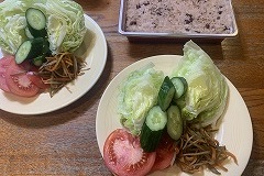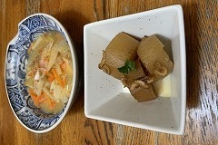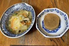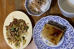I grilled atsuage and made a salad with lettuce and tomatoes. My wife made stir-fried turnips, and cafe au lait. We had them, and granola yogurt for our breakfast. My wife and I visited my wife's best friend who lives in Moriya City. And we had a soba party. My wife made soba noodles, and I made braised pork spare ribs at my home. Her friend made kenchin soup and dessert. We had them togather at her hause. I enjoyed chatting with her and her hasband. It was good time. My cousin's homemade Sekihan arrived. My wife made a salad and kinpira. We had them for our evening meal. My wife and I walked to COMPAL. COMPAL is an old bar in Iwai. It was already there when I was a child. There was an open mic event tonight, and Tokunou also performed. His singing and guitar playing are excellent. Tonight, he also performed a Minyou(Japanese folk song) accompanied by his shamisen. It was even better than his guitar playing. The other three performers were also wonderful. My wife and I enjoyed. |