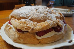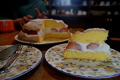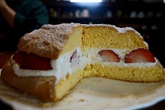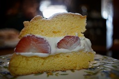 My wife made a strawberry and whipped cream cake to entertain Higan's guests. She said it's easy and quick to make, yet visually impressive, making it perfect for unexpected visitors. She also cooked our three meals today. We had three groups of guests, and we enjoyed cake, coffee, and chatting. |