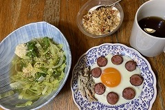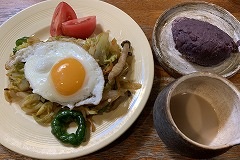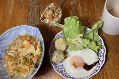 My wife made me fried eggs, stir-fried vegetables, and café au lait for our breakfast. We also had the ohagi (sweet rice cakes) that my wife's aunt, who visited yesterday, gave us. In the afternoon, my wife and I visited my father-in-law at a nursing home Yumesainoie in Sakai Tow. Visiting time was limited to 15 minutes. This was probably for infection prevention purposes. I went to Ueda with my wife. We arrived in Ueda at 6:00. |