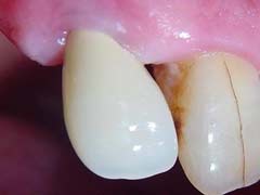 S さんの左上の第一小臼歯にメタルボンドを装着しました。 |
