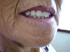 ![]() ![]() Kさんの右上の前歯二本は、歯周病が進んで抜歯しなければならなくなり先月抜歯したのです。抜歯した二本の部分を応急的修理(右写真)をして傷が治るまで待ちました。Kさんの上顎には歯がなくなってしまい総義歯を入れる状態です。 Kさんの義歯を一日預かって修理しました。(左写真)修理することで新品同様の総義歯としてよみがえりました。いままで使い慣れた義歯なので、ひょっとすると新品以上に具合が良い噛みあわせかもしれません。 |