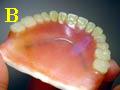 ![]() ![]() 義歯の粘膜に当たる部分を義歯床(ぎししょう)という。この床がレジン(樹脂)でできていればレジン床(れじんしょう:写真B)、金属でできていれば金属床(きんぞくしょう:写真A)と呼んでいるのだが、金属で床を作ることで薄くできるし熱が伝わりやすいので食事が心地良いといわれている。Uさんの上顎の金属床義歯が完成した。(左側写真) レービンブレード人工歯が組み込んである。義歯に名前が入ってる。かあちゃんが、チョコレートとりんごの菓子を焼いた。(右写真) |