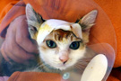 ミヤおは、7日日曜日の朝から元気がなくなった。頭か腹か、どこか痛かったのだろう。一日中苦しみもがいていた。苦しそうであり、すごく痛そうであった。その日はへたり込んだまま動けなくなった。そのまま死んでしまうのではないかと思った。しかし、その後だんだんと回復して、エサも食うようになった。 今日は、だいぶよくなってきてエサを良く食う。ふらふらするが長い距離を歩けるようになった。まだまだ元気とは言えないが、小猫らしい行動が出てきたのでひと安心。 ばんごはんはカツ丼。 |