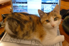 ノートパソコンのキーボードはほんのり温かい。Miya-Oはよくキーボードの上でくつろぐ。そして、私はタイプできない。 Miya-Oが、居間でくつろいでいる。(右写真) |