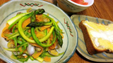 ![]() あさごはんは、昨日焼いたパンでチーズトーストをつくる。、シュレッドチーズとカマンベール、ニブタと菜の花塩漬けをトッピングした。 昼ごはんは、豚ヒレ肉にヨーグルトソースをかけて菜の花塩漬けトッピング、にんじんサラダ添え。(右側写真) 13時23分から八坂公園を3.82キロ歩いた。 晩ごはんは、牛すじとシーフードのトマト味スープ。ポテトサラダ、白ワインです。(下段写真) |