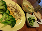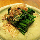 ![]() ばんごはんは、鰹のたたき丼です。コールスローサラダ、かぼちゃ、味噌汁です。 |