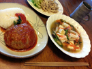 早朝、6時28分から八坂公園をジョギングした。約5。7キロ。(左側左列写真) あさごはんは、クリームチーズとアンコサンドイッチ、カフェオレ、バーミッセーキ、リンゴです。(右側中列上段写真) ひるごはんは、 ハンバーグライス、サラダ、豆腐スープです。(右側中列下段写真) ばんごはんは、 焼きそば。茄子シメジピーマンレタスチキンクルミゴマです。ビールキムチつき。(右側右列写真) |