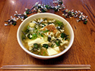 ひるごはんは、 トマトチキンニンジンレタスサラダ、蕎麦雑煮です。