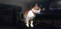 ミャオをつれて午後7時ごろうちを出る。ケージに押し込まれて車に揺られるミャオは不安で鳴き続ける。圏央道坂東インターチェンジから常磐自動車道路に乗り継ぎ友部SAで一休み。ばんごはんは、ミャオはパリパリちゃんと水、おらはスタバのサンドイッチとカフェモカです。