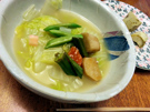あさごはんは 白菜と豚バラのスープ、にんじんサラダ、バターサンド、カフェオレです。 ひるごはんは、 白菜と豚バラのスープ、トマトにんじんサラダ、オレンジ、味たまカフェオレです。 ばんごはんは、白菜を味噌と牛乳で煮てみた。 大きな白菜をもらっていっしょうけんめいたべてる。やっぱり、おいしいうちにおいしくくっちゃいたい。 |