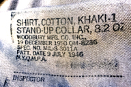 ![]() The other day, when I was cleaning up my parents' warehouse, an American SHIRT,COTTON,KHAKI-1 came out of a bunch of used clothes. Around 1950, it seems to be made by WOODBURY MFG, CO.INC. Probably a US military release. あさごはんは、マロニーちゃんを生トマトと濃いトマトジュースで煮てパルミジャーノレジャーノを添えたものです。 今日は、モノタロウで買ったものが宅配便で届くことになったので在宅して待つことにした。午前中に届いたのでたすかった。 ひるごはんは、あんことクリームチーズのサンドイッチとカフェオレです。午後は、実家の倉庫の片付けをした。 ばんごはんは、マロニーちゃんと野菜の煮込み、豚角煮、豆腐鰹節、スライストマトです。義父と一緒に食べた。 先日、実家の倉庫を片付けていたら古着の束の中からアメリカ軍のカーキ色のシャツが出てきた。1950年ごろの WOODBURY MFG社製らしい。米軍の放出品だろう。私は、買った記憶がない。サイズ的に弟が買ったものではないだろう。戦後すぐに実父の二郎が秋葉原の露天で手に入れたものか。謎の一着だな。洗濯して着てみた。首が細すぎてボタンが留まらないが着られる。ちょっときついんだが、。すそにスタンプが押してある。 以下その表記 SHIRT,COTTON,KHAKI-1 STAND-UP COLLAR,8.2 OZ WOODBURY MFG,CO.INC 19 DECEMBER 1950 QM-8235 SPEC,NO.MIL-S-3011A PATT.DATE9JULY 1946 N.Y.Q.M.P.A. ............ INSPECTOR 以上 日本語に訳してみると、 シャツ、コットン、カーキ-1 スタンドアップカラー、8.2オンス ウッドバリー製造 シーオー インク 1950年12月19日クオーターマスター8235(軍需品調達番号らしい) スペックナンバー MIL-S-3011A(アメリカ国防省の標準化規格の種類と番号らしい) パテント日付1946年7月9日 N.Y.Q.M.P.A.(ニューヨーク軍需品調達庁) ........... 監察官 てなことかな。1951年あたりに製造されたものだろうか。昭和26年ごろだな。まあ、ふるいな。70年ぐらい経ってるが目立った汚れや損傷がない。着心地悪いが取っておくことにしようか。 |