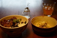 ![]() breakfast. Pork rib curry, yogurt and cafe au lait. あさごはんは、豚リブ肉のカレー、ヨーグルト、カフェオレです。 ばんごはんは、豚肉のソテー、スライストマト、盃に5種類のおかずを持ってみました。50年間ぐらい使われていなかった盃を使ってみました。 |