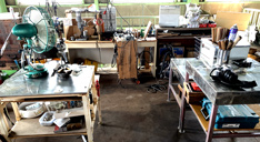 This is the factory where I remodel fossil lenses. あさごはんは、クリームチーズゆであずきトースト、カフェオレです。 レンズを改造したりパソコンを改造したり木工をしたりする作業スペースを実家の倉庫の2階に確保した。電動工具や機材を収集して配置してある。作業台はジャンクな葱剥き機を配置してる。葱剥き機は不要部分を切り落とし錆止め塗装をして使用する。 ばんごはんは、かあちゃんがつくった豚角煮など、義父と一緒に食べた。 |