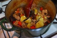 ばんごはんは、つくばにてかあちゃんがつくった。栗椎茸にんじんこんにゃくチキンの炊いたん。