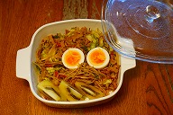 This vessel was also excavated from the old barn of my wife's parents' house. Apparently my mother-in-law bought it. There is the following engraving on the underside of the bottom. A-1-B 1 QUART CORNING WARE FOR RANGE AND MICROWAVE U.S.A. Comes with a P-7-C A-5 heat-resistant glass lid. 舞茸とこんにゃくと柚子皮を煮込んだ。豚スペアリブ肉を煮込んでみた。 あさごはんは、たまご白菜ピーマンチーズ牛丼、バナナヨーグルト、カフェオレです。 かあちゃんの実家でアメリカ製の耐熱ガラス蓋付き電子レンジ用器を発見した。1960年代の製品らしい。 ばんごはんは、ベイクドポテト、野菜煮込み、豆腐鰹節などです。義父と一緒に食べた、 |