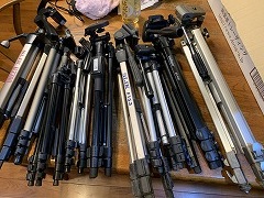 It's very cold. I can't get up early. I put stewed pork ribs and carrots on rice, garnished it with chopped green peppers and an egg, and heated it in the microwave. it is Buta Ribu Nikomi Don. I had it and cafe au lait for my breakfast. I attended Saturday English Class from 10:00 a.m. I hadn't seen everyone in over 40 days because I missed the last class. I won a set of 11 junk tripods on Yahoo! Auctions. They include SLIK, Konica, Velbon, and more. The winning bid was 100 yen for the whole set, with shipping at 1,530 yen, for a total of 1,630 yen. In other words, it was about 150 yen per tripod. One tripod needs repair, but the others are in good working order with no missing parts or malfunctions. Five of the tripods seem easy to use. Three are medium-sized and would be good for mountain trips. Three look good for indoor use. They come in a variety of sizes, so they can be used in a variety of situations. For me, a tripod is an essential item for photography, but I often forget it in a feeld. I often lose my tripod. I've lost three this year. So I can't use an expensive tripod. I made vegetable and tofu soup for my evening meal. I also had granola yogurt. |