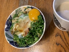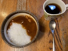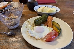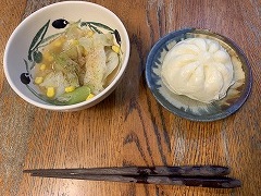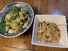 My wife made our breakfast. My wife and I went to Ami-machi to buy buckwheat flour from her friend. My wife and I had tenseiro at our favorite soba restaurant Kimura for our lunch. |