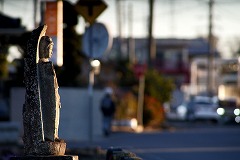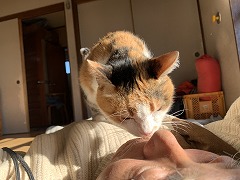 Before dawn, I went to the foot of the Shimousa Tone Bridge to take photos of the agricultural greenhouses. Then I took photos of the stone Buddha statues in Nagaya. Stone Buddha statue with unknown details. The right hand is in the "Abhaya mudra" and the left hand appears to be holding a sutra. This may be a statue of Manjushri Bodhisattva. I had ebideako, cucumber and seaweed vinegar, clam rice, tofu vegetable soup, iron-fortified yogurt, and cafe au lait for my breakfast. I had charumera with a lot of vegetables, a raw egg for my lunch. It was cold, so Miya-O was in front of the air conditioning vent. I went to a workshop and had a wooden part made that would expand the diameter of the bellows knob, allowing for quick and accurate fine adjustments for easier focusing. I had a soup with lots of vegetables and tofu for my evening meal. |