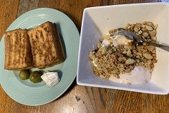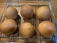 I baked graham bread in my automatioc electric bread maker. It didn't rise. My wife sade it must be because of the domestic wheat. The flour is a brand called "Yumekaori," which is 100% domestically produced. the cost is litte bit hight. It has a strong wheat aroma and a sweet taste. It might be a waste to mix it with graham flour. Next time, I'll go back to using my old flour. I bought some salmon fillets at Costco. They were thick, large salmon halves. The price per weight was about the same as pork. I haven't eaten fish recently, so I bought some. I always cut it into individual servings and freeze it. I grilled a fillet of salmon, removed the bones and skin, and put it on bread with cheese to make a hot sandwich. I didn't forget to add orange juice and garnish with basil leaves. |