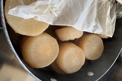 I got 2 free daikons. I maden ebidaeko. Ebideiko is cooked small shrimps and radish. It turned out so well that I set up some lighting equipment and took some photos to document it. I made stuffed peppers with pork and wrapped some of them individually and froze them. I topped with two kinds of cheese, ham, and chopped green peppers bread, then toasted. I had it for my breakfast. I had zoni for my lunch. Zoni is a vegetable soup with mochi in it. I had potato soup for my evening meal. I sold my broken i-Pod on Yahoo! Auctions for 325 yen. |
