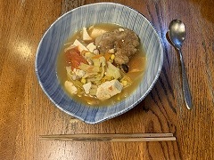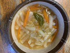 I went to Grace Clinic in Tsukuba City. An abnormality was discovered during a screening test during my health checkup in this time. I will have the test done in the clinic. The navigation system in my FJ Cruiser is old and data updates are no longer possible. The clinic is new and wasn't included in the navigation data, so I had a bit of trouble finding it. Today's session ended with an appointment for the test and an explanation of the preparation procedures to be followed two days in advance. I made a lot of soup with shimeji mushrooms, pumpkin, onion, daikon radish and atsuage. |