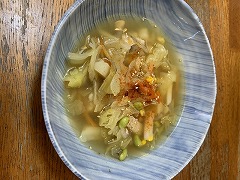 I had leftover potato and vegetable soup from yesterday for my breakfast. I continued working on e-tax today. Yesterday, I apparently made a mistake entering the financial statements, resulting in no refund of withholding tax despite my office being in the red (loss). Ah, after reviewing it several times, I finally realized my mistake and as a result, my withholding tax will be fully refunded. In the afternoon, I went to Costco to buy groceries, and I also bought some groceries at Torisen. I made spaghetti with clams and vegetables I bought at Torisen for my evening meal. |