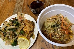 I made two servings of sauce yakisoba with lots of vegetables, one for my breakfast, other for my lunch. Today, while cleaning my room, I put some unwanted items up for auction on Yahoo! Auctions. I made a braised pork spare rib rice bowl for my lunch. I ate grilled tuna collar that I bought in Torisen for my evening meal. I grilled it again over low heat, squeeze some lemon juice over it, and ate it. It was half price, so it was 290 yen, but it was delicious. |